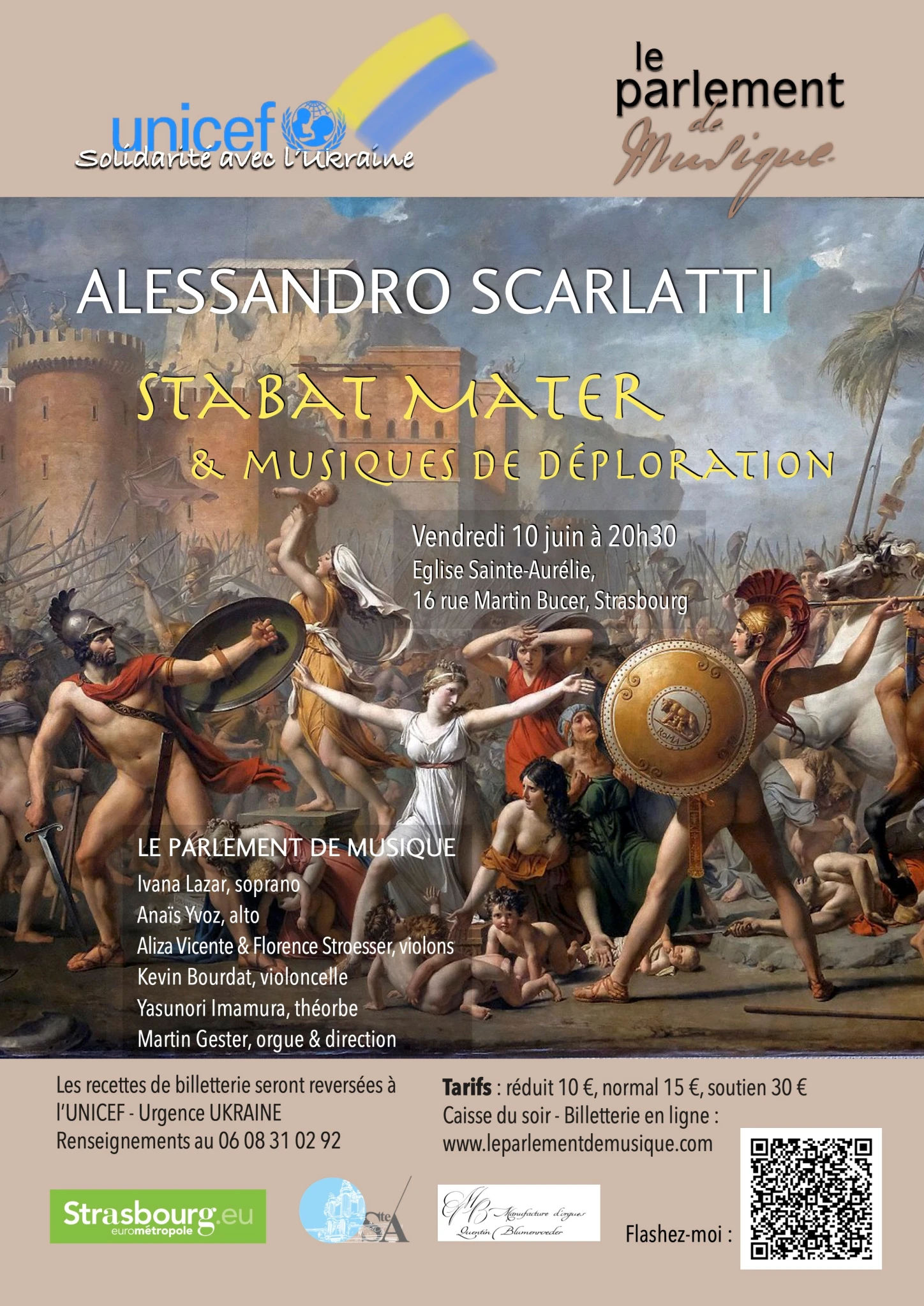 Alessandro Scarlatti Alto solo Vendredi 10 juin à 20h30 – Eglise Sainte Aurélie, Strasbourg Concert de solidarité avec l’Ukraine.Recettes de billetterie au profit de l’UNICEF « Urgence Ukraine »